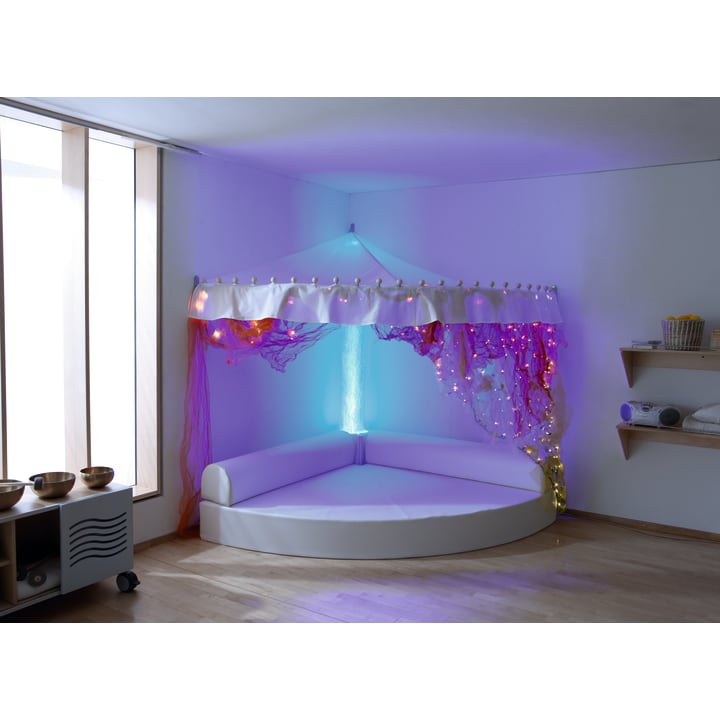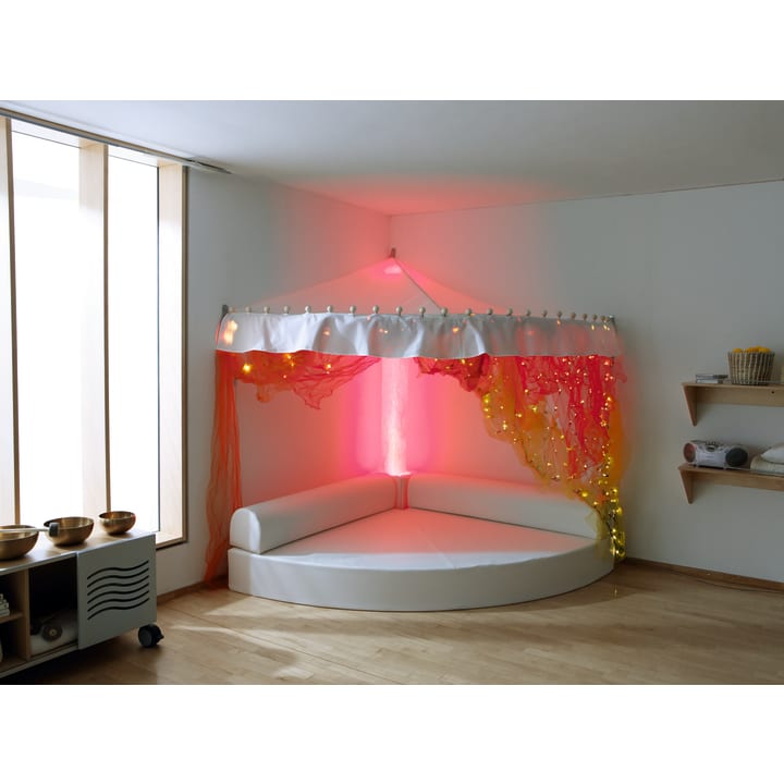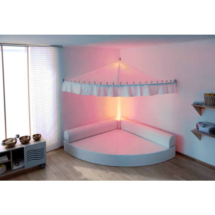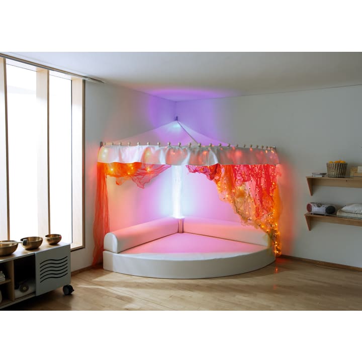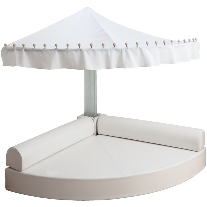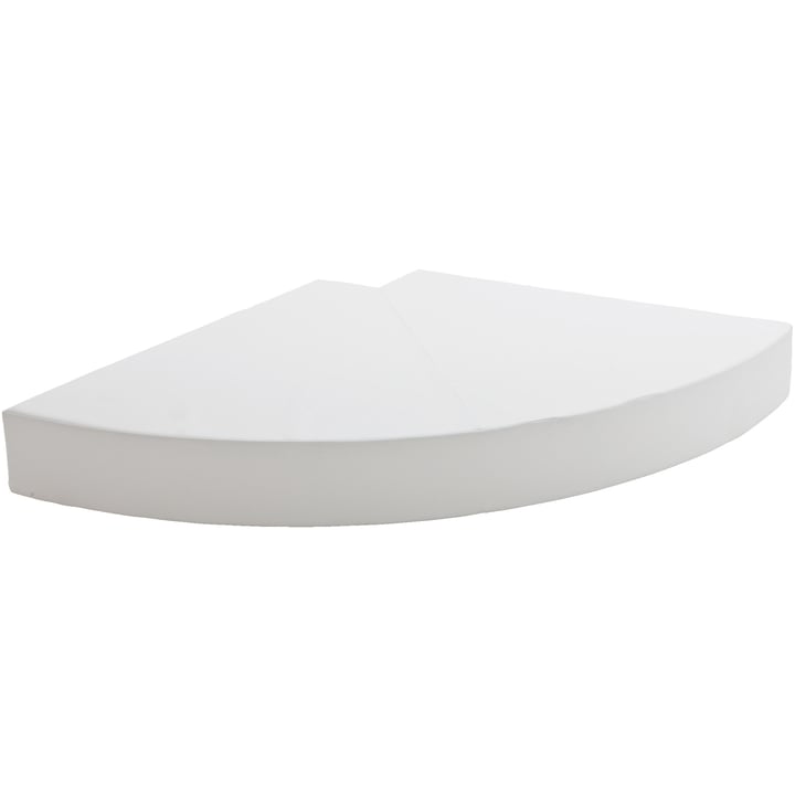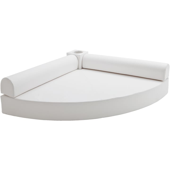 Comfortabele en grote kwartcirkelmat met uitsparing voor waterkolom. Rugleuningen (L 150 x B 25 cm, H 25 cm) inbegrepen. De meegeleverde kussenhoes (30 x 30 x 25 cm) met uitsparing dient als verbindingselement tussen de waterkolom en de rugleuningen en maakt ze compleet. Materiaal: RG 25/40 schuim, bekleding van kunstleer in wit.